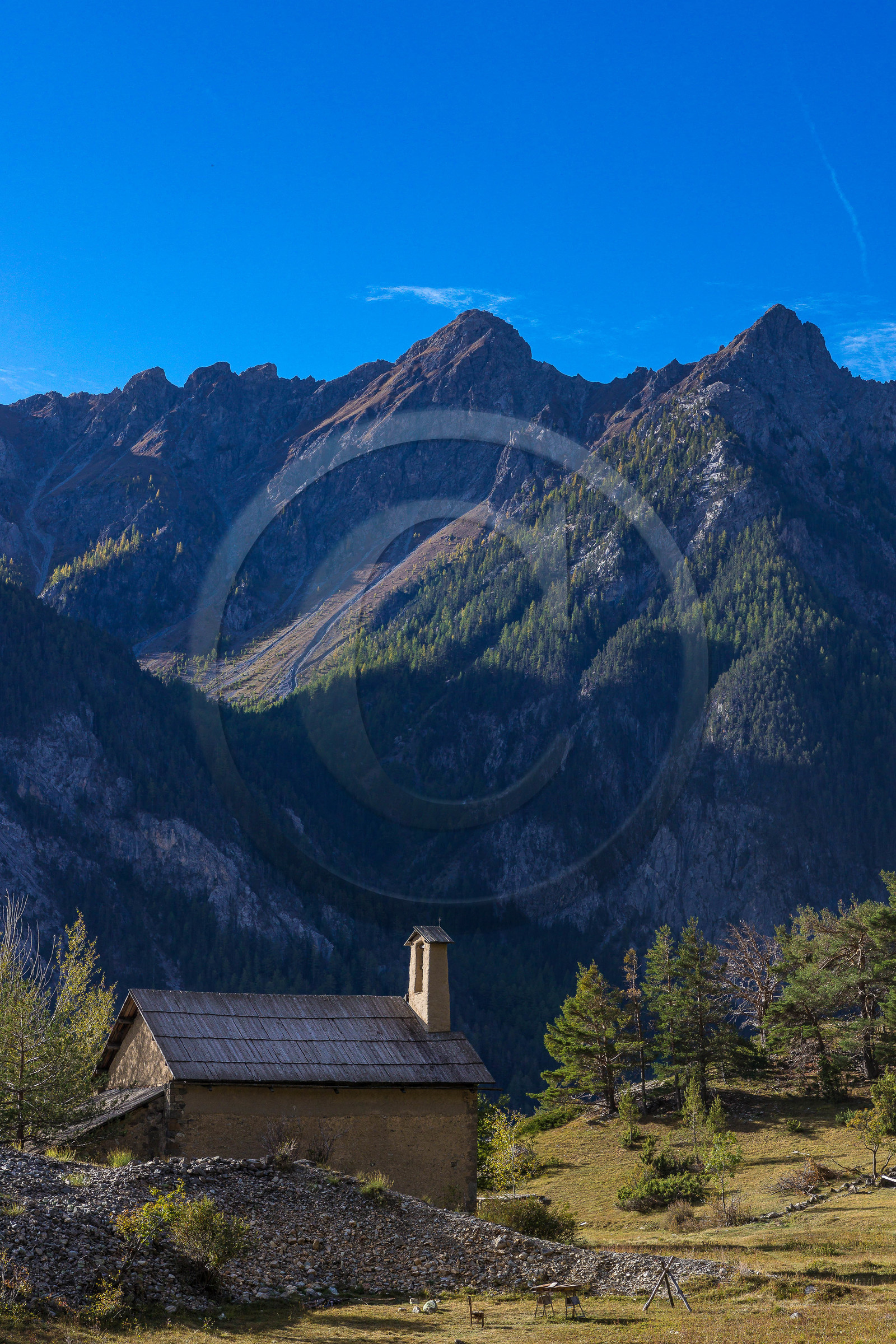 | Description | Hautes-Alpes (05), Parc naturel régional du Queyras, Arvieux, chapelle Sainte-Marie-Madeline-des-Escoyères |