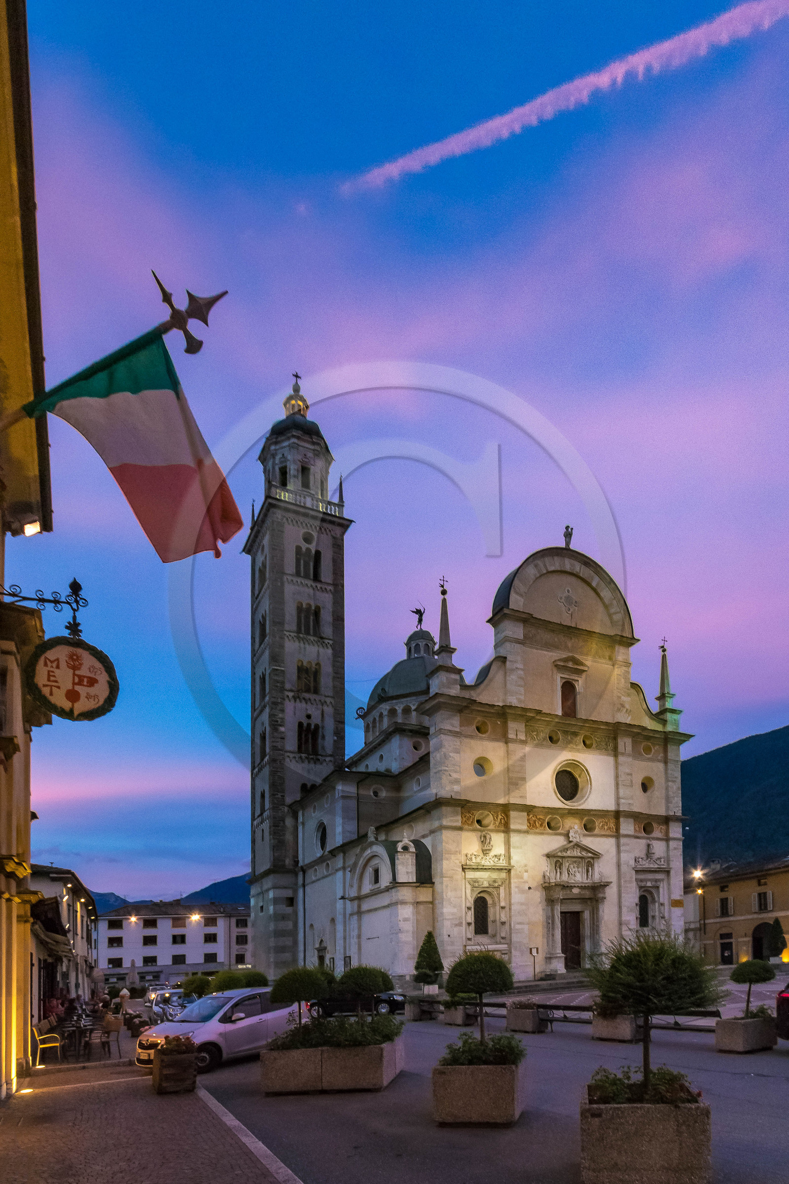 | Description | Switzerland, Canton of Graubünden, Rhaetian Railway, crossing the Alps on board the Bernina Express, UNESCO World Heritage Site, Tirano, Basilica della Madonna di Tirano |