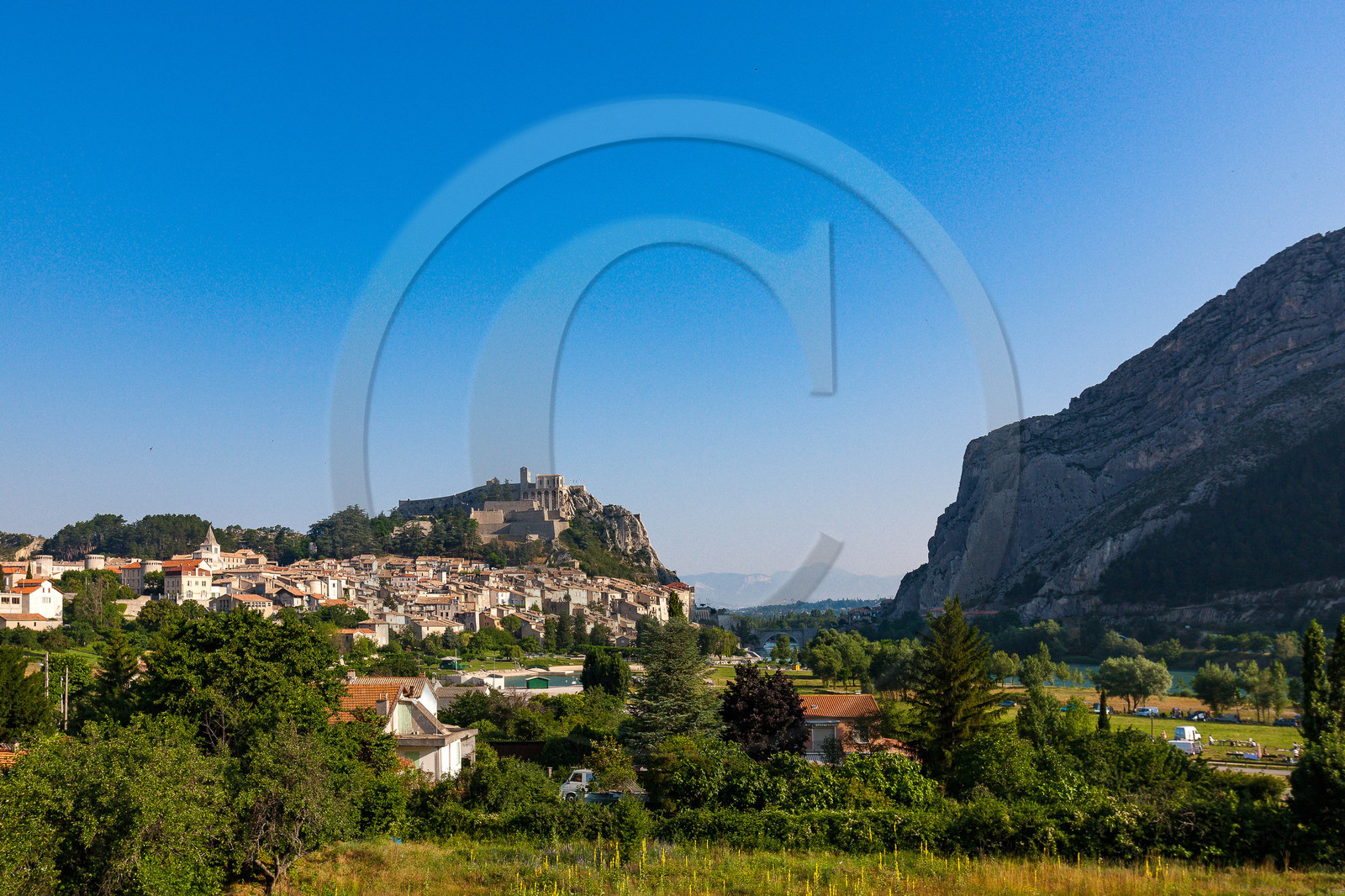 | Description | Alpes-de-Haute-Provence (04), vallée de la Durance, porte de la provence, au pied des Rocher de la Baume, Sisteron est dominé par sa citadelle blanche |