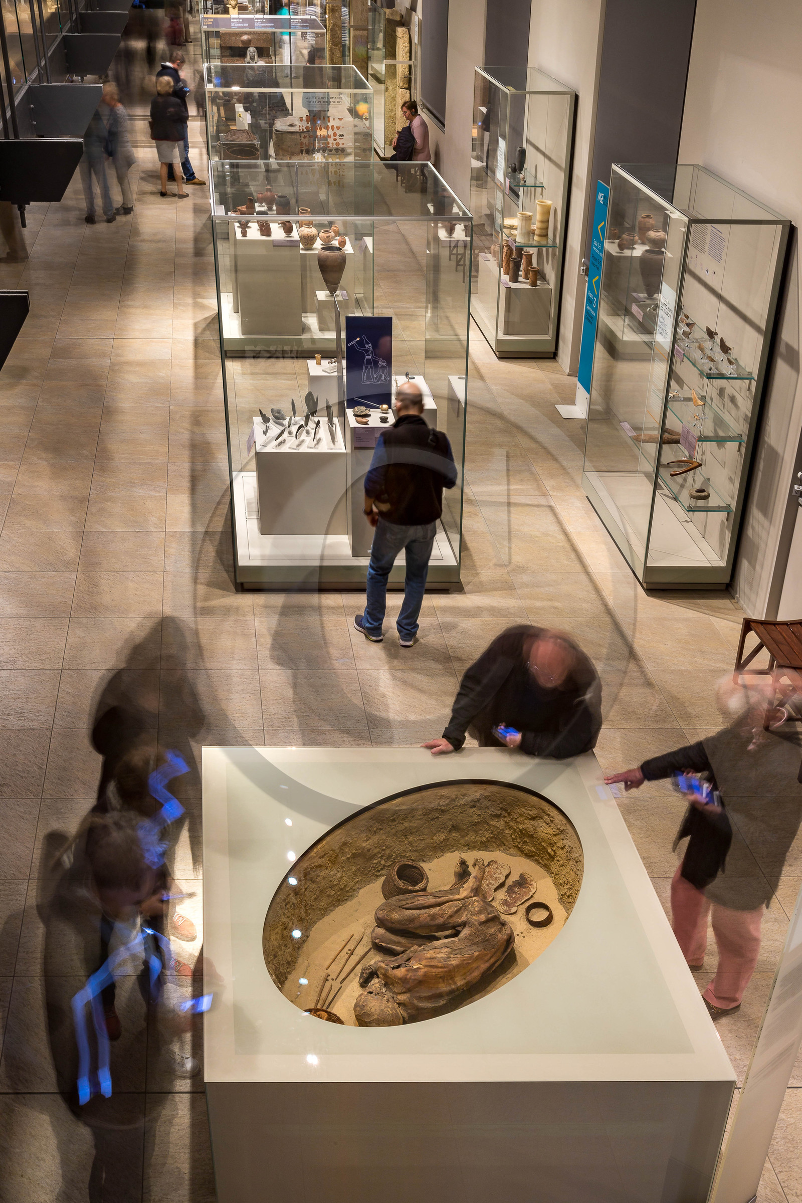 | Description | Italie, Piémont, Turin, Musée égyptologique de Turin, musée des antiquités égyptiennes (Fondazione museo delle antichità egizie di Torino), momie d'un homme en position fœtale, flèches funéraires, sandales, paniers, bols |