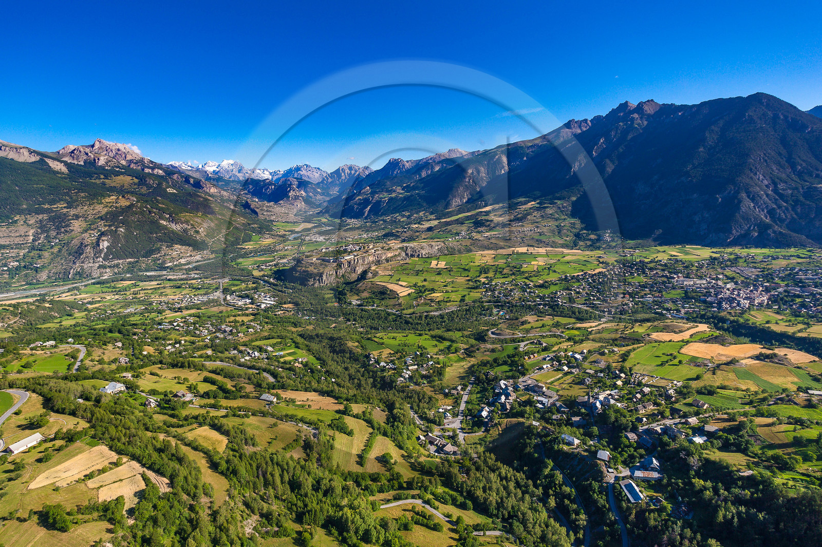 | Description | Hautes-Alpes (05), confluence du Guil et de la Durance, Guillestrois, Domaine de la Forêt Blanche, Village de Risoul, Montdauphin, Guillestre et le massif des Ecrins et le Pelvoux |