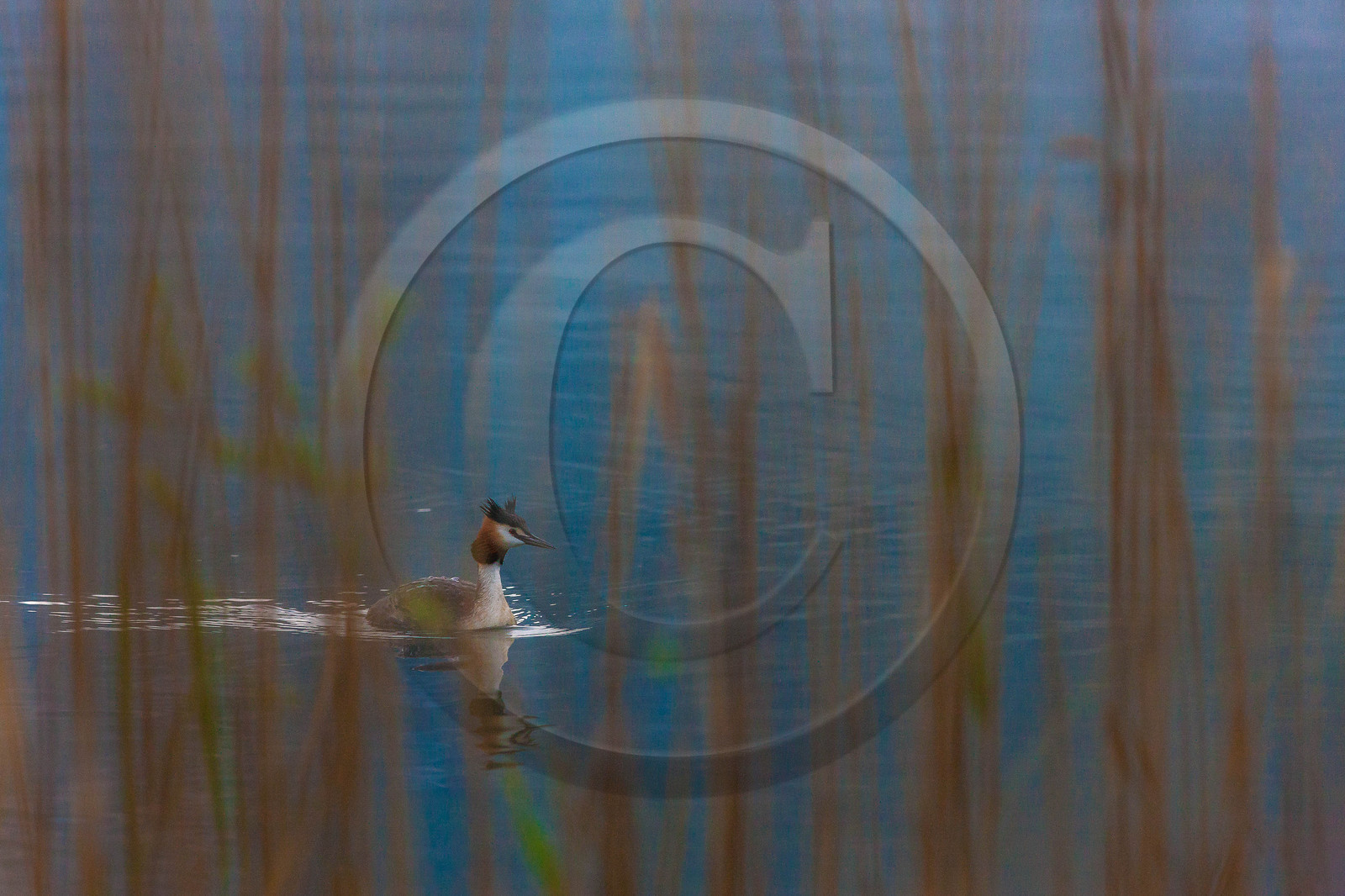 | Description | Haute-Savoie (74), Lac d'Annecy, Doussard, Réserve naturelle du Bout du Lac, Grèbe huppé (Podiceps cristatus) |