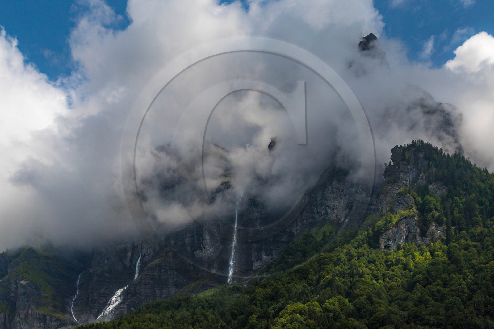 | Description | Haute-Savoie (74), Grand Massif Montagnes du Giffre, vallée du Giffre, Réserve naturelle de Sixt-Passy, Le Fer à Cheval et les cascades |