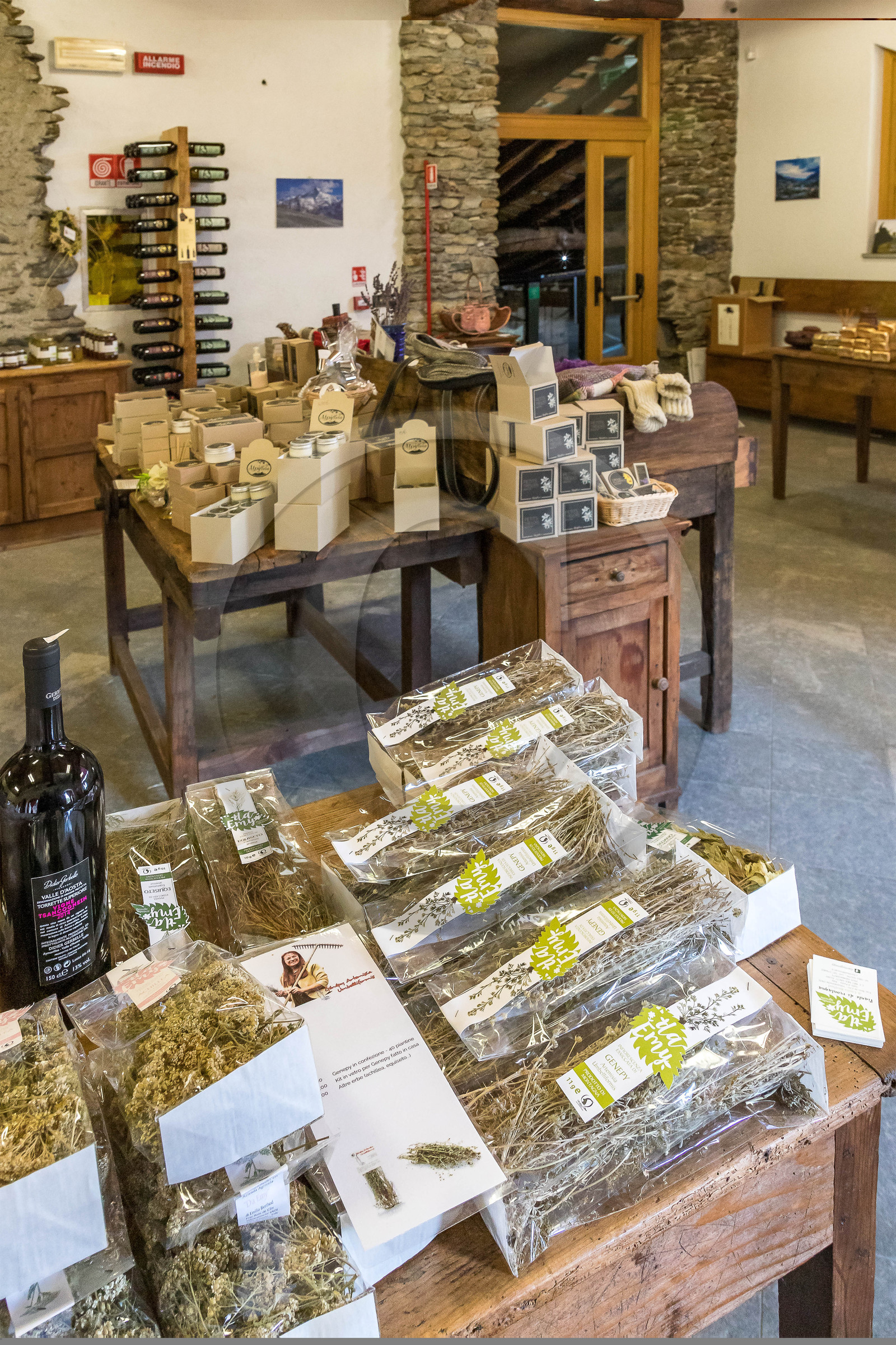 | Description | Italie, vallée d'Aoste, Introd, Maison Bruil, musée maison typique valdôtaine avec une société de promotion L'Atelier du goût |