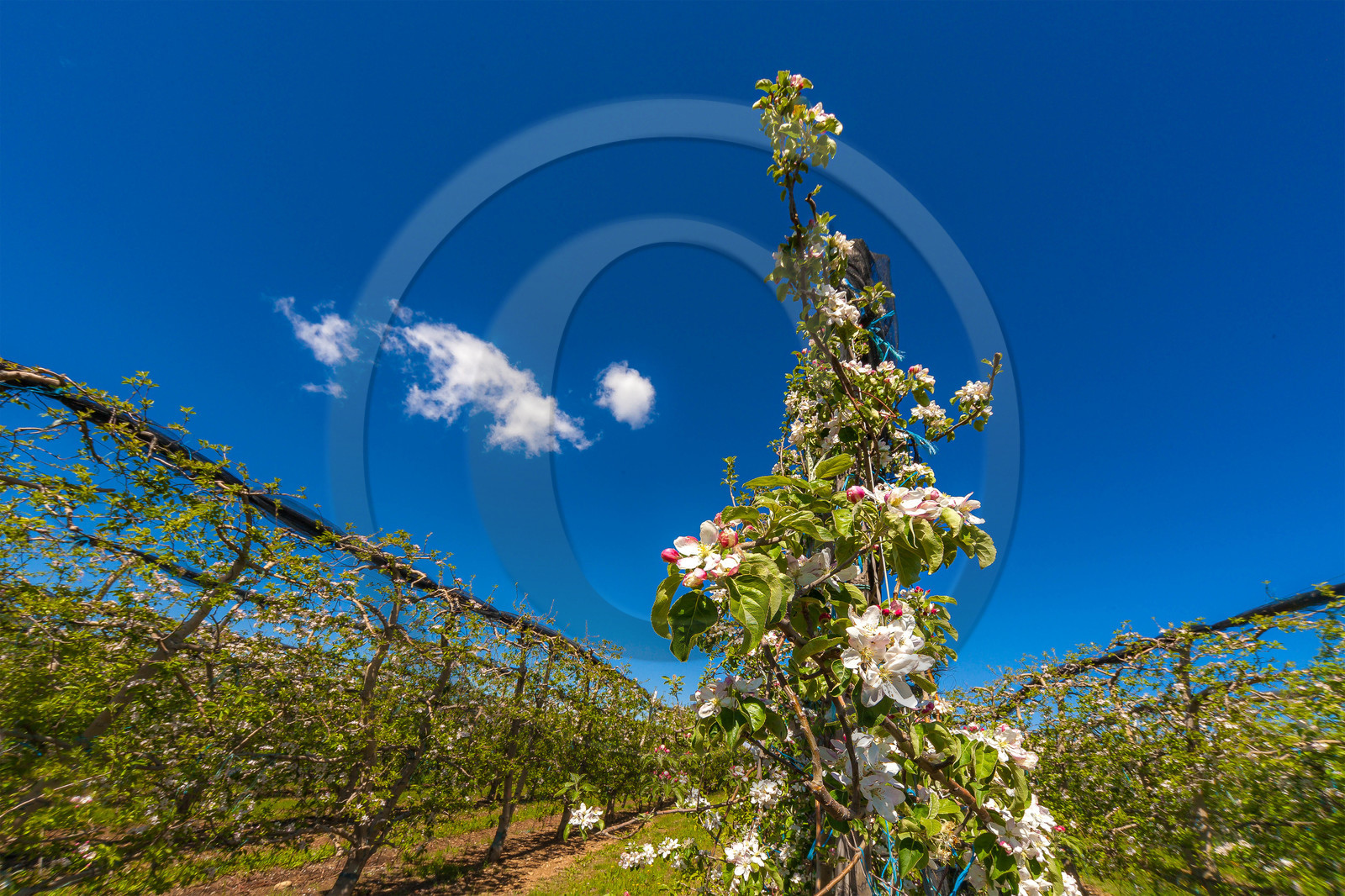 | Description | Hautes Alpes (05), vallée de la Durance, arboriculture, pommiers en fleur, producteur de pommes |