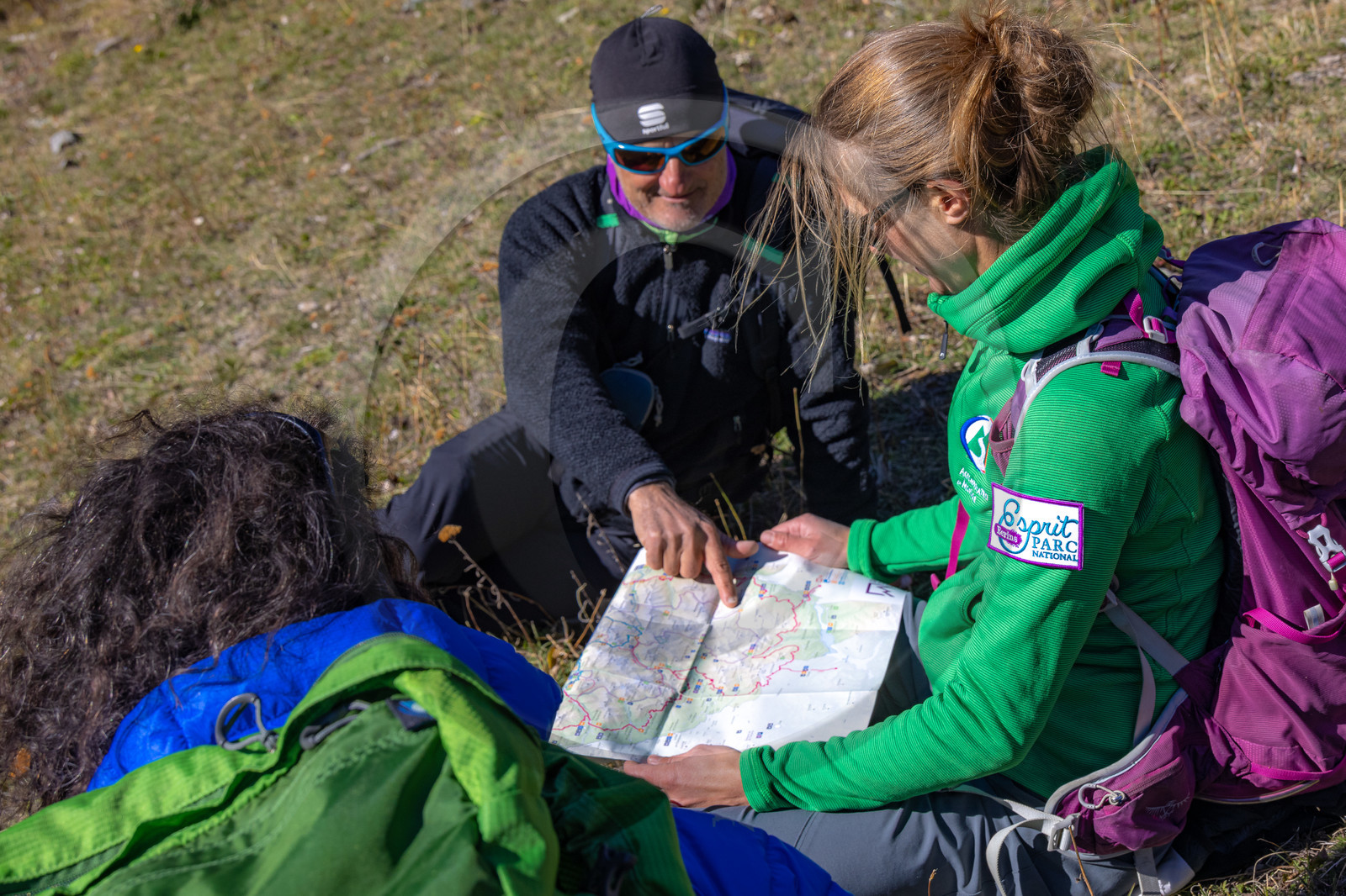 | Description | Hautes-Alpes (05), Parc national des Ecrins, Vallée de la Guisanne, Serre-Chevalier, Bureau Montagne Visa Trekking, randonnée pédestre avec Marjolaine Flammier, accompagnatrice en moyenne montagne, sortie découverte bouquetin Esprit Parc national |