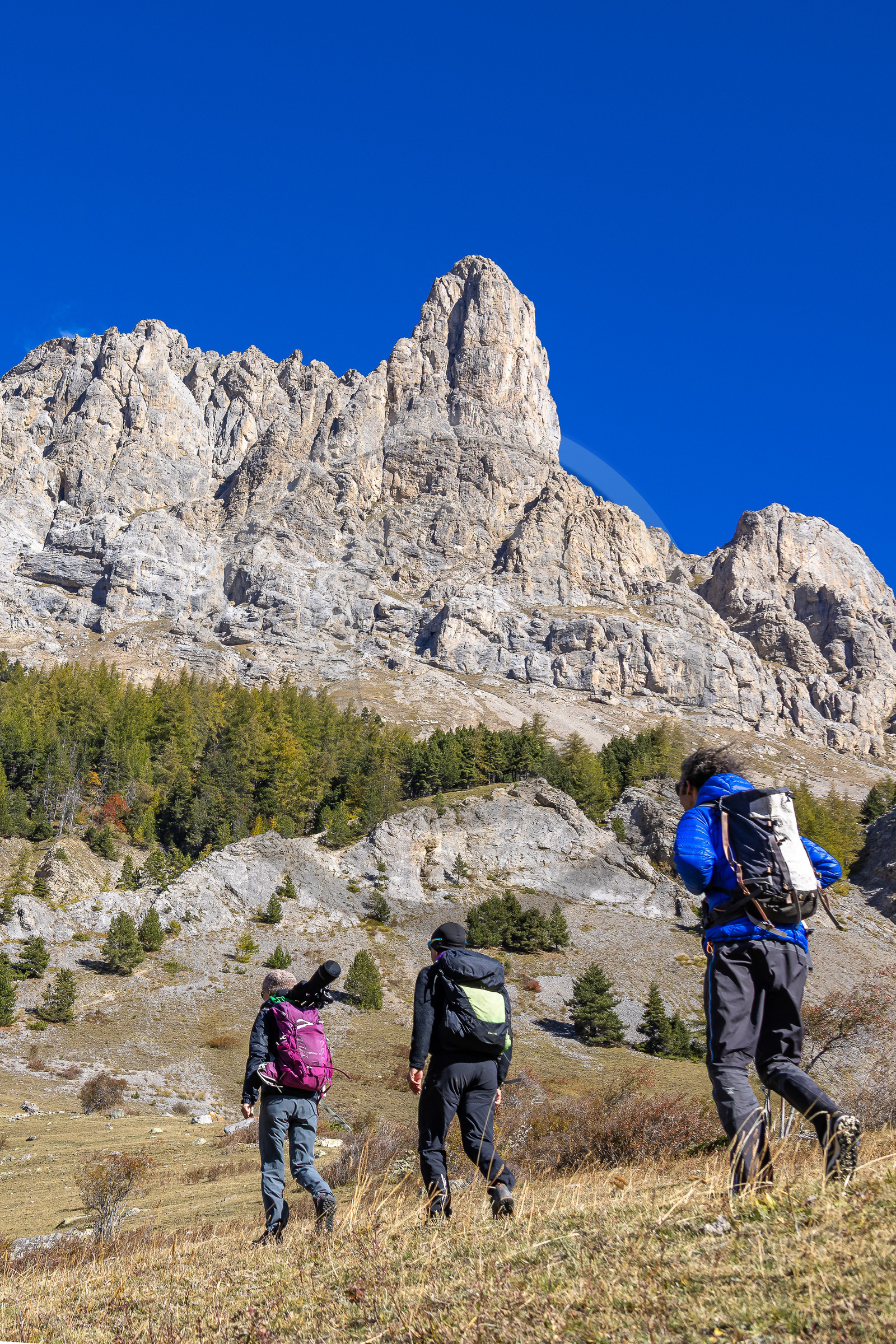 DescriptionHautes-Alpes (05), Parc national des Ecrins, Vallée de la Guisanne, Serre-Chevalier, Bureau Montagne Visa Trekking, randonnée pédestre avec Marjolaine Flammier, accompagnatrice en moyenne montagne, sortie découverte bouquetin Esprit Parc national