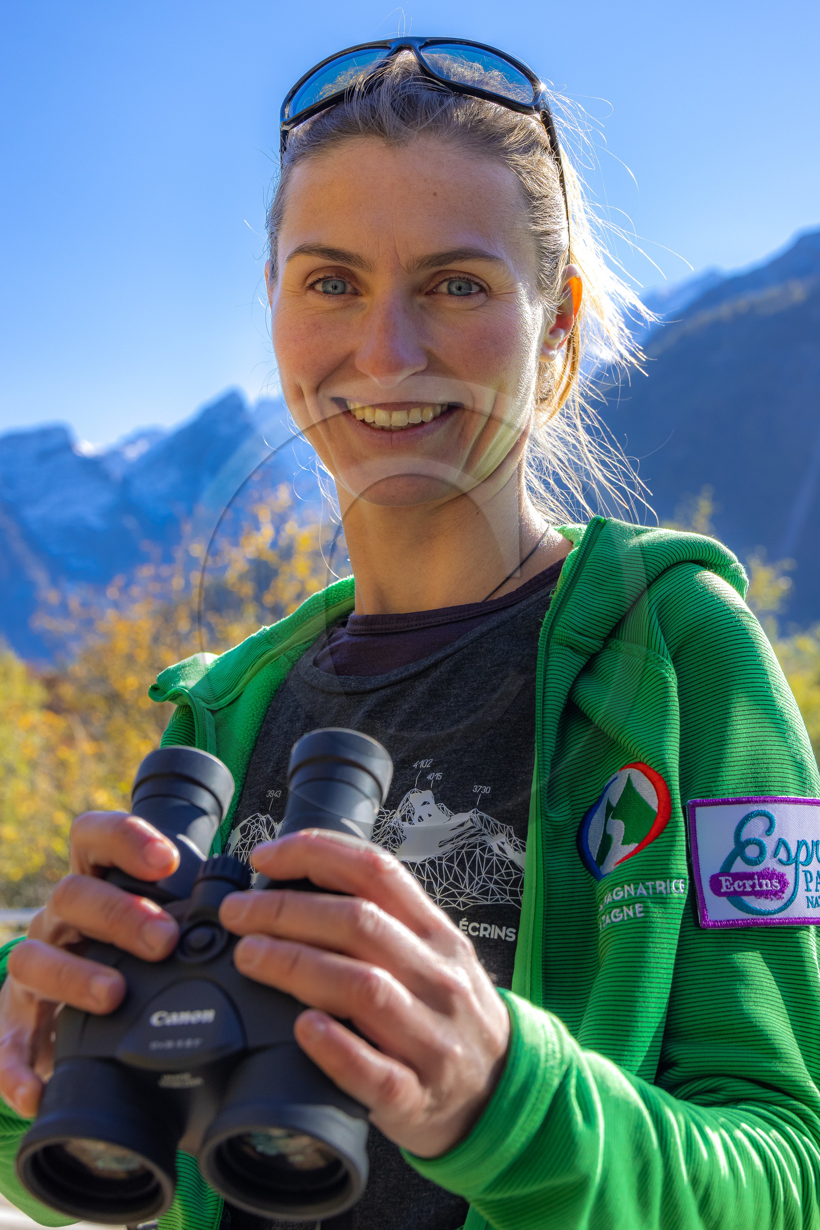 | Description | Hautes-Alpes (05), Parc national des Ecrins, Vallée de la Guisanne, Serre-Chevalier, Bureau Montagne Visa Trekking, randonnée pédestre avec Marjolaine Flammier, accompagnatrice en moyenne montagne, sortie découverte bouquetin Esprit Parc national |