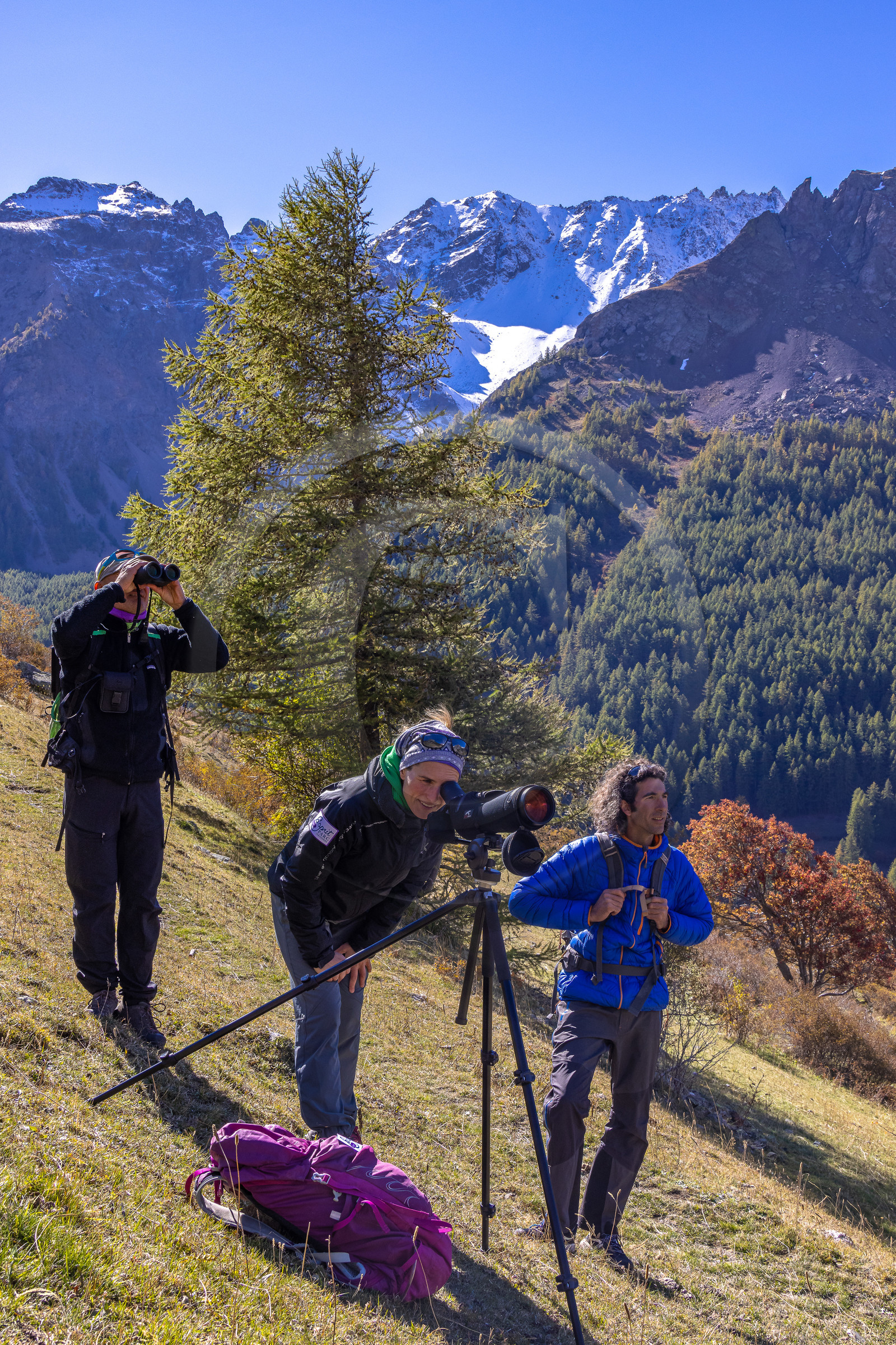 | Description | Hautes-Alpes (05), Parc national des Ecrins, Vallée de la Guisanne, Serre-Chevalier, Bureau Montagne Visa Trekking, randonnée pédestre avec Marjolaine Flammier, accompagnatrice en moyenne montagne, sortie découverte bouquetin Esprit Parc national |