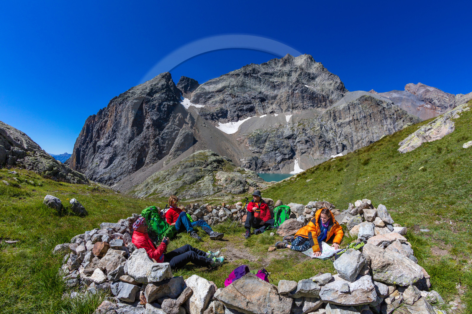 | Description | Hautes-Alpes (05), Pays des Ecrins, Parc national des Ecrins, Pelvoux-Vallouise, GR 54, Grand tour des Ecrins, Lac de L'Eychauda |